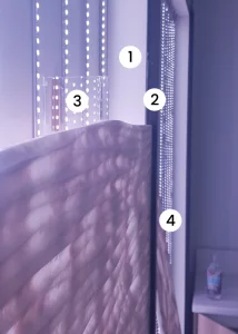 - Incorporate acrylic standoffs for support between the lights and at the join as in this picture, fix to panel with clear/translucent Silicone. (We supply 70mm standard height)