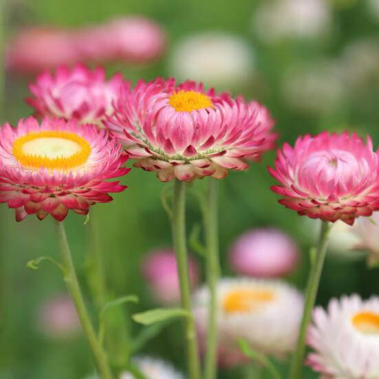 - Delicate Rodanthe flowers, originally from Australia, add a sense of lightness & timeless elegance with their intricate blossoms.
