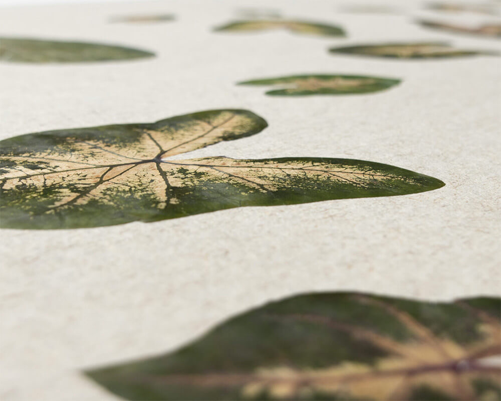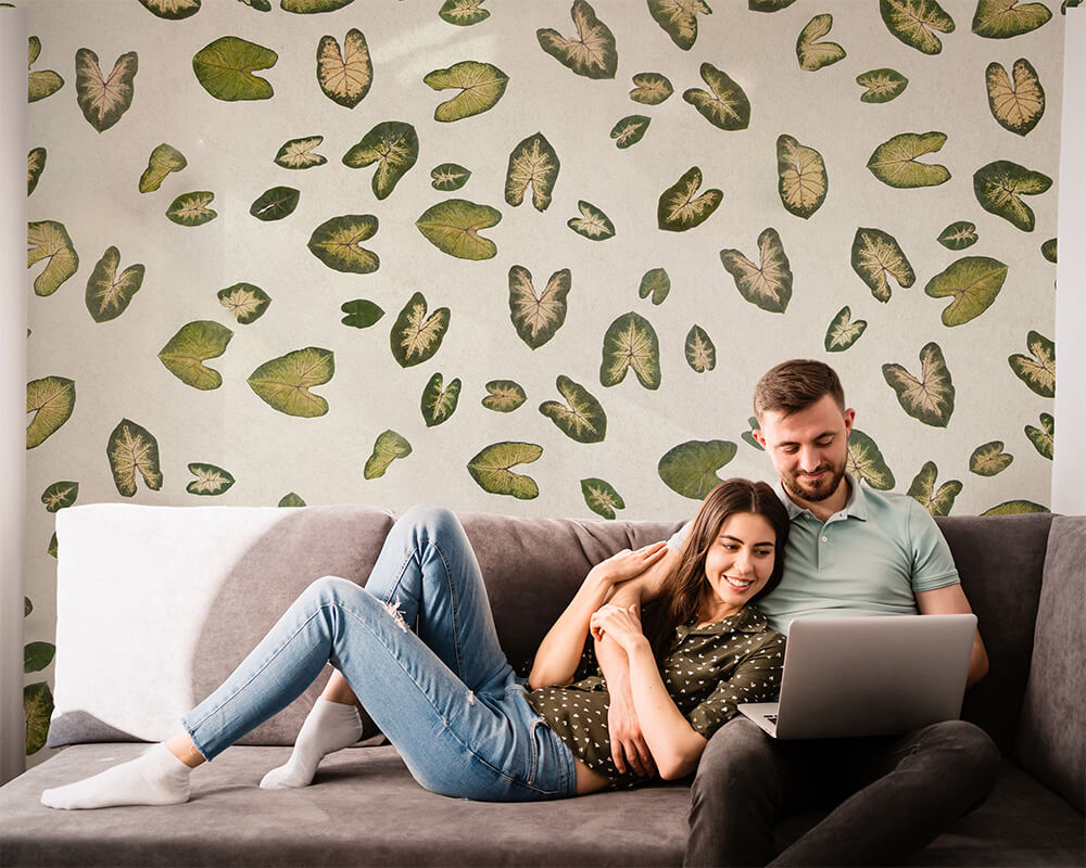 Turn your wall into a natural work of art! Captivating Caladium leaves, with their spectacular interplay of green and white, bring the vibrant beauty of tropical rainforests into your space.