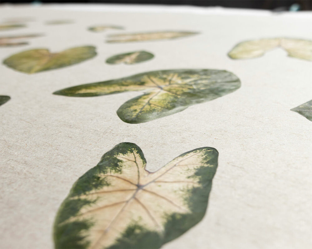 Their soft leaf structure adds organic depth to the surfaces, while the unique patterns appear as if painted by nature itself. A true statement piece for those who love colour, vitality and tropical elegance!