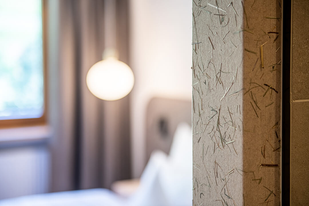 With a strong focus on creating a natural, airy ambiance for the hotel’s interior, Nature Hotel Molin delivers a rejuvenating experience for its guests. Their choice of Wildspitze light, set against a backdrop of natural flax, brings a touch of the Alpine outdoors inside. This carefully selected blend of loosely scattered Alpine hay is a perfect fit for large wall and ceiling applications, seamlessly integrating with the overall interior design of the hotel.