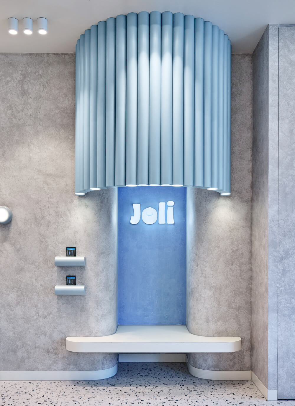 Working with Staron reinforced its versatility in crafting custom design elements, such as the POS bench, water station, and feature tube design. Its thermoformability allowed for seamless curved forms, enhancing Joli’s soft, organic aesthetic while maintaining durability and ease of upkeep.