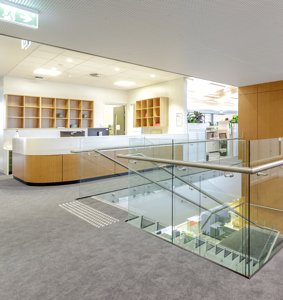 Staron® Solid Surfaces has been specified in colour Sanded Cream for the main reception area and an additional administration reception on level 1. Staron® is featured as the benchtop material that also continues to the top front of both reception cabinetry. The hygienic nature and ease of maintenance of the material make it the perfect surface solution for these busy reception areas. The non-porous and joining properties of Staron® eliminates open joins and resists stains.
